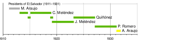 It was not until the Constitution of the Republic of El Salvador of 1886 was ratified when the presidential term is increased from two to four years, beginning and ending the presidential terms on 1 March. In 1913, before the death of Manuel Enrique Araujo, a family 'dynasty' would begin. The Meléndez-Quiñonez Dynasty lasted 18 years until Arturo Araujo became President.