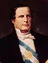 There was a new attempt to organize a central government in 1826. A new congress wrote a new constitution and elected Bernardino Rivadavia as president in the process.[2] Rivadavia was the first President of Argentina. However, he resigned shortly after and the 1826 Constitution was repealed. The Argentine provinces then organized themselves as a confederation without a central head of state. In this organization, the governors of Buenos Aires province took some duties such as the payment of external debt or the administration of the foreign relations in the name of all provinces.[3] Those governors were appointed by the Buenos Aires legislature, with the only exception of Juan Lavalle. Juan Manuel de Rosas kept the governor office for seventeen consecutive years until Justo José de Urquiza defeated him at the 1852 Battle of Caseros. Urquiza then called for a new Constitutional Assembly and promulgated the Argentine Constitution of 1853, which is the current Constitution of Argentina through amendments. In 1854, Urquiza became the first President of modern Argentina, acting both as head of government and head of state.[4] However, the Buenos Aires Province had rejected the Constitution and became an independent state until the aftermath of the 1859 Battle of Cepeda, although the internecine conflict continued. Only after the subsequent Battle of Pavón in 1861, the former bonaerense leader Bartolomé Mitre became the first president of a unified Argentine Republic.[5]