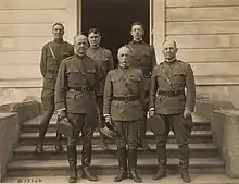Major General Omar Bundy (center), commander of the U.S. 2nd Division, Colonel Preston Brown, the division's chief of staff, and other members of the division staff, pictured here at Chaumont-en-Vexin, France, May 28, 1918.
