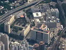 The hospital has undergone redevelopment since 2007. The Main Clinical Block and Trauma Centre, a fourteen-storey new building, was built on the site of the original helipad and tennis court. With a total gross floor area of 71,500 square metres, the new building provides in-patient services, operating theatres and day services. Construction work started on 23 April 2007 and the new building was opened in late 2010.[16] The hospital began its 10-year phase 2 redevelopment project in 2018. The construction of a new In-patient Extension Block is expected to complete in 2025-2026.[17]
