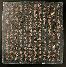 Characters carved on stone blocks placed on the right-hand side of the tomb were used to identify its occupant. The characters read: 有明朝鲜和協翁主之墓寅坐 (The burial of Princess Hwahyeop of the Joseon dynasty). The second excavation in December 2016 unearthed a memorial stone featuring a eulogy dictated by King Yeongjo, a stone chest containing porcelain jars for cosmetics, a bronze mirror, and a wooden comb.[15] The eulogy by King Yeongjo contained a total of 394 characters written on the back, front, and sides of the memorial stone. The eulogy details the king's final visit to his ill daughter on the 25th day of the 11th lunar month, 1752, two days before her death. It has been remarked that it is rare for a Joseon king to inscribe a stone for a daughter, and the act has been taken as a sign of King Yeongjo's affection for this particular daughter.[16]