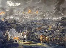 The initial military manoeuvres began in September 1806. In a letter to Marshal Soult detailing the plan for the campaign, Napoleon described the essential features of Napoleonic warfare and introduced the phrase le bataillon-carré ("square battalion").[9] In the bataillon-carré system, the various corps of the Grande Armée would march uniformly together in close supporting distance.[9] If any single corps was attacked, the others could quickly spring into action and arrive to help.[10] Napoleon unleashed all French forces east of the Rhine, deploying the corps of the Grande Armée along the frontier of southern Saxony. In a preemptive strike to catch the Prussians unaware, the Emperor had the Grande Armée march as a massive bataillon carré (battalion square) in three parallel columns through the Franconian Forest in southern Thuringia. Each corps would be in mutual supporting distance of each other, both within the column and laterally to the other columns (once through the difficult passage of the forest), thus allowing the Grande Armée to meet the enemy at any contingency. This strategy was adopted due to Napoleon's lack of intelligence regarding the Prussian main army's whereabouts and uncertainty over his enemy's puzzling manoeuvres in their march to face him. The reason for this stemmed mainly from the mutual mistrust within the Prussian high command that had resulted in division among the Prussian commanders over which plan of action for the war would be adopted. Despite the deficiency in pinpointing the main Prussian army's exact position, Napoleon correctly surmised their probable concentration in the vicinity of Erfurt-Weimar and formulated a general plan of a thrust down the Saale valley towards Gera and Leipzig, then wheeling westward in order to envelop the left flank of where he believed the Prussians were located and thus cut off their communications and line of retreat to Berlin.