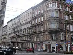 During the siege of Breslau, 40% of the housing development was destroyed. The area is characterized by pre-war tenement buildings. The second half of the 20th century marked the beginning of a bad reputation for this part of the city, formerly known as the Bermuda Triangle due to its high crime rate.[2]