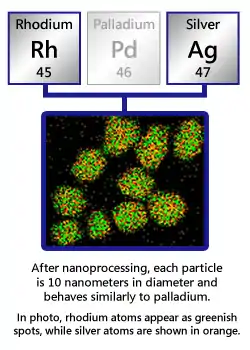 "The orbits of the electrons in the rhodium and silver atoms probably got jumbled up and formed the same orbits as those of palladium," Kitagawa said.[3]