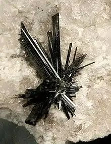| Crystal habit | Prismatic to needle like, striated |