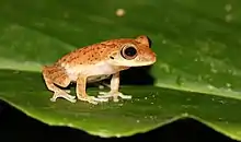 Pseudophilautus auratus, commonly called golden shrub frog,[3] is a species of frog in the family Rhacophoridae, endemic to Sri Lanka,[1] where it lives in closed-canopy cloud forests between 513 and 1270 meters above sea level, including the Sinharaja World Heritage Site and Kanneliya Forest.[4][5]