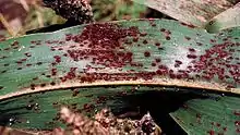 - ↑ White, J. A.; Ryley, M. J.; George, D. L.; Kong, G. A. (2015-01-01). "Identification of pathotypes of the sorghum rust pathogen, Puccinia purpurea, in Australia". Australasian Plant Pathology. 44 (1): 1–4. doi:10.1007/s13313-014-0318-3. ISSN 1448-6032.