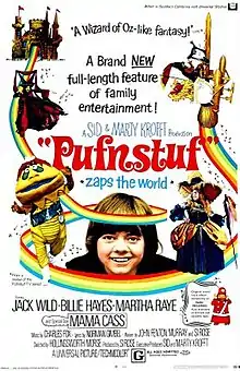 Pufnstuf (also known as Pufnstuf Zaps the World) is a 1970 American comedy fantasy musical film produced by Sid and Marty Krofft Enterprises and released by Universal Pictures. It is based on the children's television series H.R. Pufnstuf, a show that features a cast of puppets on a "living island."