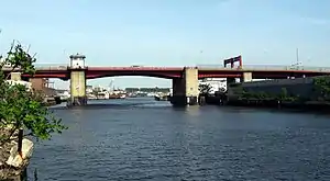 The Pulaski Bridge in New York City connects Long Island City in Queens to Greenpoint in Brooklyn over Newtown Creek. It was named after Polish military commander and American Revolutionary War fighter Casimir Pulaski in homage to the large Polish-American population in Greenpoint.[2] It connects 11th Street in Queens to McGuinness Boulevard (formerly Oakland Street) in Brooklyn.