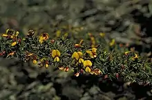 | Pultenaea hispidula in the Australian National Botanic Gardens | |
