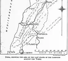 Allenby's plan outlined to Henry Wilson, CIGS at the War Office on 25 September, included an advance to Beirut at the same time as the advance to Damascus: