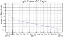 - 1 2 3 Kafka, S.; Tappert, C.; Honeycutt, R. K.; Bianchini, A. (2003). "Spectroscopic Study of Q Cygni: Surprises from an Old Nova". The Astronomical Journal. 126 (3): 1472–82. Bibcode:2003AJ....126.1472K. doi:10.1086/377020.