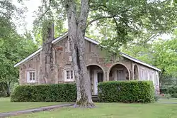 The Quattlebaum–Pelletier House is a historic house at 43 Ozark Street in Twin Groves, Arkansas. It is a single-story masonry structure, its exterior finished in a combination of fieldstone veneer and cream-colored brick. Built in 1942, it has many of the hallmarks of the work of Silas Owens Sr., a regionally prominent African-American mason, including an arcaded recessed porch, and the types of exterior materials used. Owens departed from his usually herringbone pattern for laying the stone on the walls, instead using longer and thinner sandstone in a geometric pattern.[2]