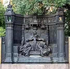 The Queen Alexandra Memorial on Marlborough Road, London, which commemorates Queen Alexandra, was executed by the sculptor Sir Alfred Gilbert between 1926 and 1932. It consists of a bronze screen incorporating allegorical figures, set into the garden wall of Marlborough House and facing St James's Palace. A late example of a work in the Art Nouveau style, it was regarded by the sculptor as his "Swan song".[2]