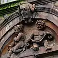 The front of the hotel originally included arched windows with eight carved heads, with four heads located over the ground floor windows and four over the first floor. The front also features cherubs, a satyr playing the pan flutes, floral designs, eagles, and keystones carved as human heads.[2] The ground floor carvings have since been removed and the front of the building modernised.