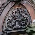 The carvings on the facade of the building are an example of the high quality of local sandstone carving, in particular that of prolific local sculptor William Flint.