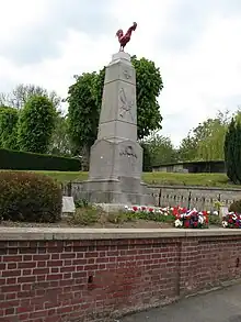 In 1921, a War Memorial was erected in front of the main square. Built in granite of Ardennes on truncated pyramidal shape of four metres high, it is surmounted by a gilded Gallic rooster.[19]