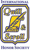Quill and Scroll is an international high school journalism honor society that recognizes and encourages both individual and group achievements in scholastic journalism. According to the Quill and Scroll website, over 14,104 high schools in all 50 U.S. states and 44 countries have established local chapters. The organization was founded on April 10, 1926, and is based out of the University of Iowa.