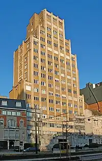 The Résidence de la Cambre is the first high-rise building constructed in Brussels, Belgium. It was built in 1938–39, according to the plans of the architect Marcel Peeters, in a style inspired by New York Art Deco architecture.[1] The 17-story residential tower was listed as a protected monument on 14 July 2005.[2][3][4]