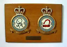 The 138 and 161 Squadron badges on display inside St Peter's Church, Tempsford