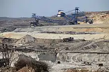 The beginnings of mining in the region of Kolubara basin are associated with the year 1896 when the first pit Zvizdar was opened. In the eastern and western part of the basin coal has been successively extracted from the 14 pits Zvizdar, Sokolovac, Skobalj, Radljevo, Prkosava, Veliki Crljeni, Kolubara 1, Veliki Crljeni - Kolubara 2, Kosmaj - Kolubara 3, Baroševac, Šopić, Junkovac and others. A turning point in coal production came in 1952 with the opening of the first open pit (Fields A) which started mass surface mining of lignite. Opening of new mines and processing facilities fallowed.[5] The mining projects' original intention was to secure a stable, constant supply of energy and electricity for the country, which is why the Serbian federal government considers these projects of national interest.