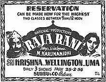 - ↑ "Raja Rani". The Indian Express. 23 February 1956. p. 3. Retrieved 5 May 2022.