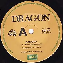 "Ramona" is a song by Australian-New Zealand band Dragon released in October 1982. The song was Dragon's first and only single to be released on the EMI Music label. The song peaked at number 79 on the Australian Kent Music Report.