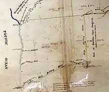 A claim was filed by Salvador Castro for one square league with the Land Commission in 1852 and confirmed in 1856.[8] However, the 1857 official survey of Castro's land gave him more than the Land Commission thought he should to have, the surplus being taken from the lands of the United States. Castro appealed his case to the US Supreme Court, but lost.[9] The San Gregorio (Castro) grant was patented at 4,439 acres (18.0 km2) in 1861.[10]