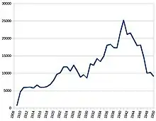 | 1935 | 14,813 | 72 | 1,366,900[65] | |