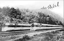 The Gulf, Mobile and Northern Railroad Rebels were lightweight, streamlined diesel-electric trains built by American Car and Foundry. The first two trains, purchased in 1935, provided service over the roughly 450 miles (720 km) between New Orleans, Louisiana, and Jackson, Tennessee.[1] The third train, purchased in 1937, allowed service to be added between Jackson and Mobile, Alabama. Unlike other earlier diesel streamliners, these trains were not articulated, as their normal operation required adding and removing cars from the consist.
