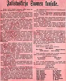 - ↑ "Declaration to the Finnish people, 1905". Retrieved 23 July 2023