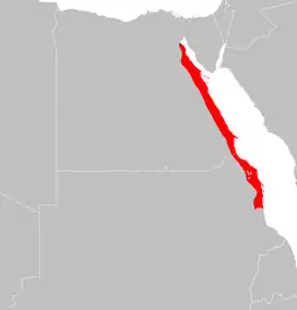 The Red Sea coastal desert extends north and south along the Red Sea and Gulf of Suez, which bound it on the east. It includes both a narrow coastal strip and the Red Sea Hills, a range of coastal mountains that runs parallel to the coast. The Egyptian portion is bounded on the west by the Eastern Desert, part of the hyper-arid Sahara Desert ecoregion. The Sudanese portion is bounded by the South Saharan steppe on the west, and by the Sahelian Acacia savanna to the south.[1]