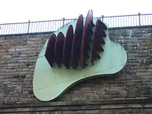 Work to replace the second crossing began in 1980.[6] Of the original crossing, only the south abutment now remains (adorned by a modern sculpture designed by Richard Deacon). The third bridge is very different from its two predecessors. It is a pre-stressed concrete structure with a central span of 160 m (520 ft), 26 m (85 ft) above the river,[7] and two side spans of 100 m (330 ft) each (including the approaches, it is a total of 897 m (2,943 ft) long and 15.8 m (52 ft) wide). It can carry abnormal loads of up to 400 tonnes,[8] and has a life expectancy of 120 years. It was constructed by Edmund Nuttall Ltd to a design by Mott, Hay and Anderson's young engineer, Alan Yiu Lun Wan.