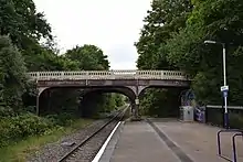 At the west end of the station are two bridges, neither directly accessible from the station: the first is a footbridge carrying the Lovers' Walk footpath, then some 10 metres (11 yd) beyond is a road bridge carrying Redland Grove. The line crosses over Redland Road just beyond the east end of the station.[1]