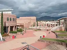 Redlands East Valley is a 264,000-square-foot (24,500 m2) comprehensive high school located on a 57-acre (230,000 m2) sloping site, designed to house 2,500 students. An element in the design was a focus on the media center and its application of technology. The majority of the building exteriors are built with concrete masonry, exposed structural steel, glass, and metal roofs. The school colors and mascot were chosen to contrast cross-town rival Redlands High School, an example being how Redlands East Valley has a Wildcat and Redlands High has a Terrier.