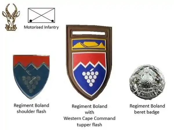 Regiment Boland was an infantry regiment of the South African Army. As a reserve unit, it had a status roughly equivalent to that of a British Territorial Army or United States Army National Guard unit.