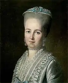 Regina-Louise von Freedricksz was born into a German family in St Petersburg. She married baron Ivan von Freedricksz (1723-1779), court banker to empress Catherine the Great, with whom she had nine children.