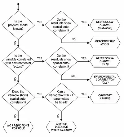 - ↑ Odeh, I.O.A.; McBratney, A.B.; Chittleborough, D.J. (31 July 1995). "Further results on prediction of soil properties from terrain attributes: heterotopic cokriging and regression-kriging". Geoderma. 67 (3–4): 215–226. Bibcode:1995Geode..67..215O. doi:10.1016/0016-7061(95)00007-B.