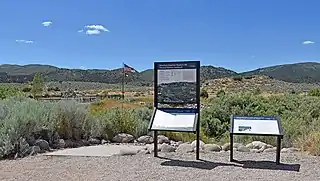 A majority of the Mountain Meadows massacre site is listed on the National Register of Historic Places and has been since 1975; the site was also designated a National Historic Landmark in 2011.[41][42] The LDS Church began working on National Historic Landmark status for the site—following requests from descendant groups—in 2007.[43][44] The Church hired an independent company, Paula S. Reed and Associates, Inc., to research the massacre and prepare the necessary documentation for the landmark application.[45] The application for landmark status was presented to the Landmark Committee of the National Park Service Advisory Board by representatives of the Church and descendant groups in Washington, D.C., on November 3, 2010.[46] The Landmark Committee reviewed the application and took public comment on the issue, and then recommended to the National Park Service Advisory Board approval of the nomination. The Advisory Board met on April 13, 2011, to review the application and submitted their recommendation to the Secretary of the Interior, Ken Salazar.[47] On June 30, 2011, Salazar announced that the site had been designated a National Historic Landmark.[42][48]