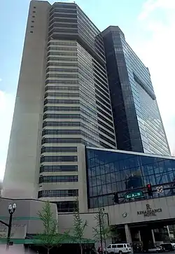 The Renaissance Nashville Hotel [1] is a hotel in Nashville, Tennessee. The building is 385 feet high with 31 floors.[2] The hotel was physically connected to the Nashville Convention Center[3] until the demolition of the convention center in June 2017.[4] Construction began on the 5th + Broadway complex at the location of the former convention center in early 2018,[5] and the Renaissance Hotel will be located at the northwest corner of that development. The 5th + Broadway complex has a predicted completion date of spring 2020.[6]