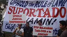 Corona's supporters also showed solidarity with him during the trial with signs and by their presence at the Supreme Court.