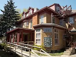 The Renwick family may have built this house in 1867, and various members of the family lived here into the 20th century. Lumber baron William Renwick, a partner in the firm Renwick, Crossett & Shaw, lived here from 1867 to around 1895, when he moved to a mansion he built closer to the Mississippi River. That house eventually became a part of St. Katharine's School. His sisters Margaret and Rebecca Renwick lived here from the mid-1890s to just before World War I. It was during this time that the house was extensively renovated. Rebecca owned her own millinery shop named Renwick and Hannah. The house has subsequently been converted into apartments.[2]