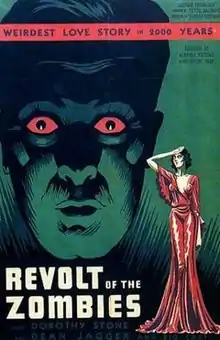 Revolt of the Zombies is a 1936 American horror film directed by Victor Halperin, produced by Edward Halperin, and stars Dean Jagger and Dorothy Stone. One of the earliest zombie films, it was initially conceived as a loose sequel to the director's moderately successful White Zombie (1932) but, due to a lawsuit, was unable to promote itself as such.[1]