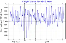 A light curve for V846 Arae, plotted from TESS data[10]