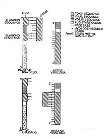 Lechner invented the first riboregulator in 1991.[2] Lechner used a self pairing stem-loop which inhibited translation of a prokaryotic RNA, unless a complementary RNA sequence (anti-inhibitor) was present. In 1997, Black engineered the first eukaryotic riboregulator using antisense molecules to prevent translation (Nucline RNA).[1] In the Nucline system, antisense molecules block translation unless removed via competitive hybridization and strand-displacement by specific signal RNA sequences such as HIV RNA and oncogene RNA.[4] In 2003, Black demonstrated that Nucline RNA could perform Boolean and arithmetic operations (If-then-else, AND gate, OR gate and "Molar concentration of x > molar concentration of y" calculations ) in HIV infected monocytes and breast cancer cells.[5][6]