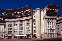 In a noted study of France's evolving social structures and landscapes published in 2021,[12] political scientist Jérôme Fourquet and journalist Jean-Laurent Cassely wrote that "the monumental projects designed by Spanish architect Ricardo-Bofill in Noisy-le-Grand (Les Espaces d'Abraxas), in Saint-Quentin-en-Yvelines (Les Arcades du Lac) and in Montpellier (the Antigone neighborhood) are basically the architectural signature of the 1980s" in the country.[13]