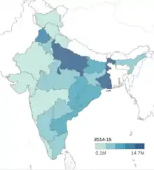 | States | Rank (2014–15) | Actual Production (2014–15) | % of Country Total (2014-15) | Cumulative % of Country Total (2014-15) | Average Production (2010-11 to 2014-15) | Estimate (2015–16) |