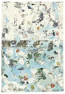 Although mostly abstract and casual, Aldrich's paintings also betray a distinctly literary sensibility, even as he targets what he has called the essential "unwordliness of experience." Snippets of text and random words-UFO, the numeral 4-appear as decals or pencil scrawls, while lines incised with the back of a brush suggest writing once removed. Taciturn pictures carry evocative and ungainly verbal appendages in the form of elliptical press releases or titles like Large Obsessed with Hector Guimard, 2008, a nod to the architect of Paris's Art Nouveau metro stations, or If I Paint Crowned I've Had It, Got Me, 2008, a telling paraphrase of Cézanne explaining he would be ruined if he tried to paint the "crowned" effect of a still life rather than the thing itself.[2]