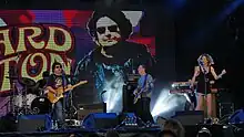 Clapton was without a recording contract from 1989 to 1992 and had four changes of management until he signed with Sony Music/Columbia Records for the release of Distant Thunder in May 1993.[1] It provided four singles and was produced by Clapton.[1][8] It charted in the top 40 but no single reached the top 50 on ARIA's Singles Chart. His second album for Sony, Angeltown appeared in May 1996 with a single, "Dixieland", in March—neither reached their respective top 50 charts.[23] In October 1999 Clapton released a compilation Richard Clapton – The Definitive Anthology, which peaked in the top 30.[1][23] The album was released to coincide with his ARIA Hall of Fame induction at the ARIA Music Awards of 1999 alongside Jimmy Little.[24] Clapton was inducted by INXS member, Andrew Farriss, he observed, "That's very apt. Especially since I wrote a really good song with Andrew a few months ago."[25] At the Gimme Ted benefit concert on 9 March 2001 Clapton was backed by surviving members of INXS on four of his songs,[26]