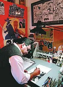 ![]() Dominguez inking the latest issue of El Gato Negro: Nocturnal Warrior. | |